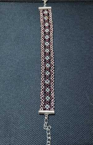Ручная работа выполнена из мелкого бисера и лески с фурнитурой. В длину 20 см в ширину 1,5 см.