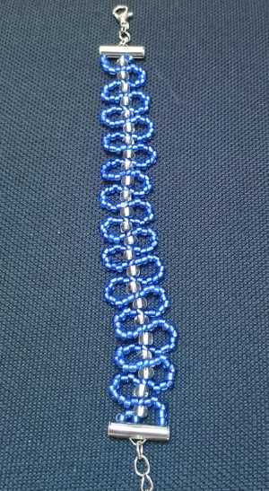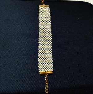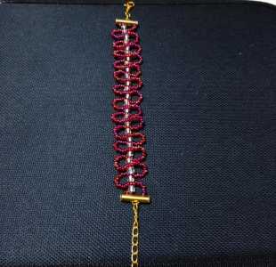 Ручная работа из мелкого бисера, сделанная из лески с добавлением фурнитуры. В длину 20 см, в ширину 1,5 см