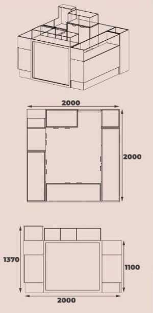 Высота: 2.5 м Длина: 3.5 м + 2 подиума Также в продаже есть: 6 полочек - 15 руб/шт 50 крючков по 10 см - 10 руб/шт