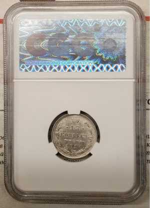 Серебряная разменная царская монета в слабе