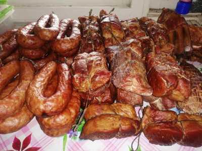 Домашняя рубленная колбаса. Натуральное копчение ( колбаса, карбонат, грудинка, сало, куриная копченая продукция) .