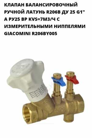 КЛАПАН БАЛАНСИРОВОЧНЫЙ РУЧНОЙ ЛАТУНЬ R206B ДУ 25 G1" A РУ25 ВР KVS=7М3/Ч С ИЗМЕРИТЕЛЬНЫМИ НИППЕЛЯМИ GIACOMINI R206BY005