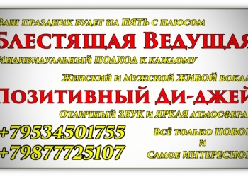 Ведущая, ди-джей, на праздник! Всё будет просто класс! Большой опыт работы, индивидуальный сценарий, всё только новое...