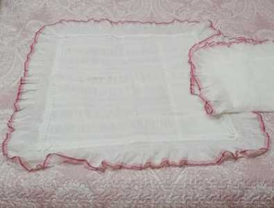 Продаю новые декоративные наволочки на подушки, 2 штуки, ткань нейлон "жатка", цвет белый, с бордовой окантовкой, размер...