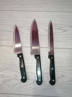 Продаю три ножа, прочные, надёжные, не гнутся, на самом большом и шикором ноже небольшой скол на ручке, на его функционал не...