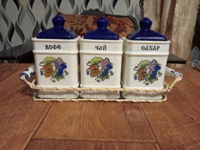 Набор 3-х контейнеров из керамики с разносом ( СССР). Не пользовались.